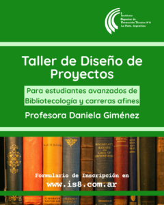 Se encuentra abierta la inscripción al taller de Diseño de Proyectos a cargo de la profesora Daniela Giménez. Destinatarios: estudiantes avanzados de la carrera Bibliotecología…