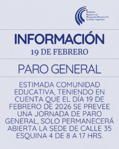 Estimada comunidad educativa, teniendo en cuenta que el día 19 de febrero de 2026 se prevee una jornada de paro general, solo permanecerá abierta la…
